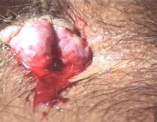 内痔:是以肛门齿线以上发生静脉曲张团块,表面覆以粘膜,常有便血(大便带血、滴血、喷血),痔核脱出,便秘等为主要表现的痔病类疾病。本病若早期治疗,一般预后良好。注:不治?会造成痔核变大,如鸡蛋或更大,色灰白,大便时或行走时脱出肛外,不能自行还纳,痔核脱出后如不尽快还纳,则易嵌顿而绞窄肿胀、糜烂坏死。
